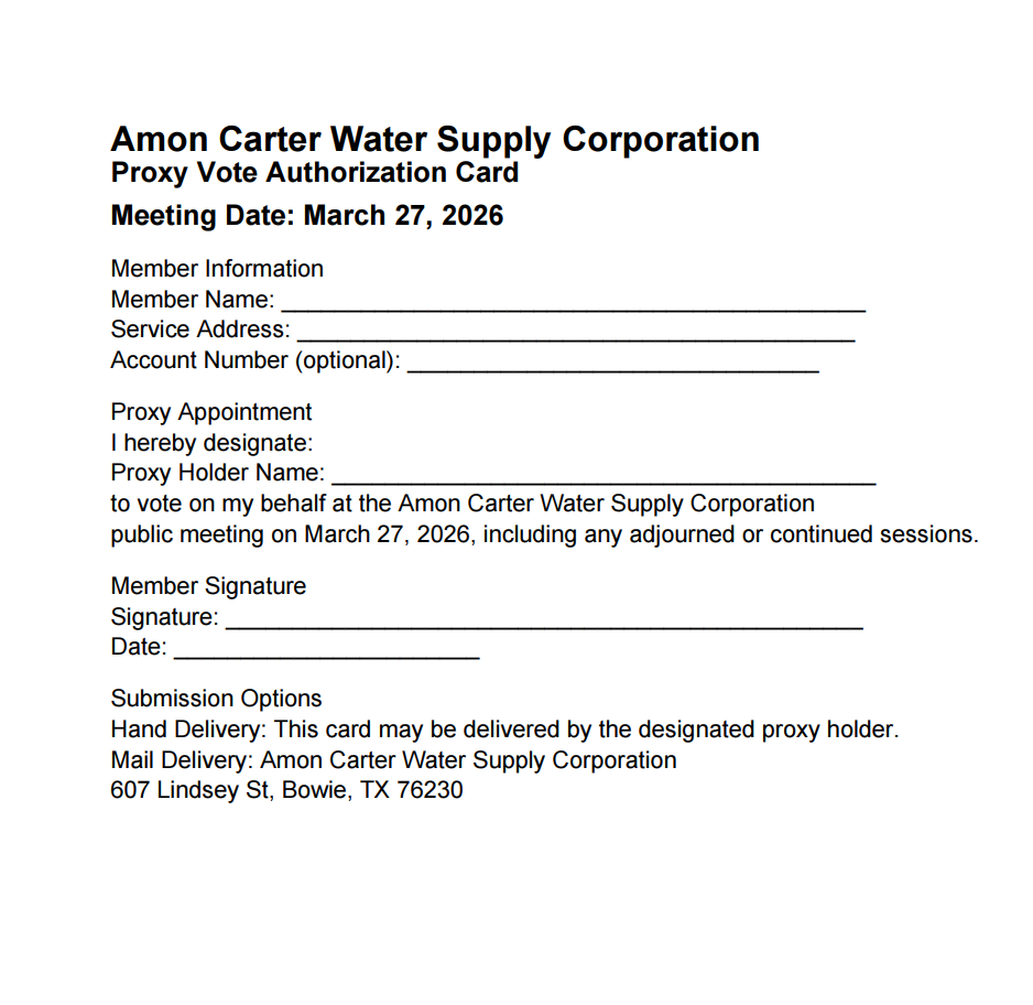 Notice To All Amon Carter Lake Water Supply Corporation Members